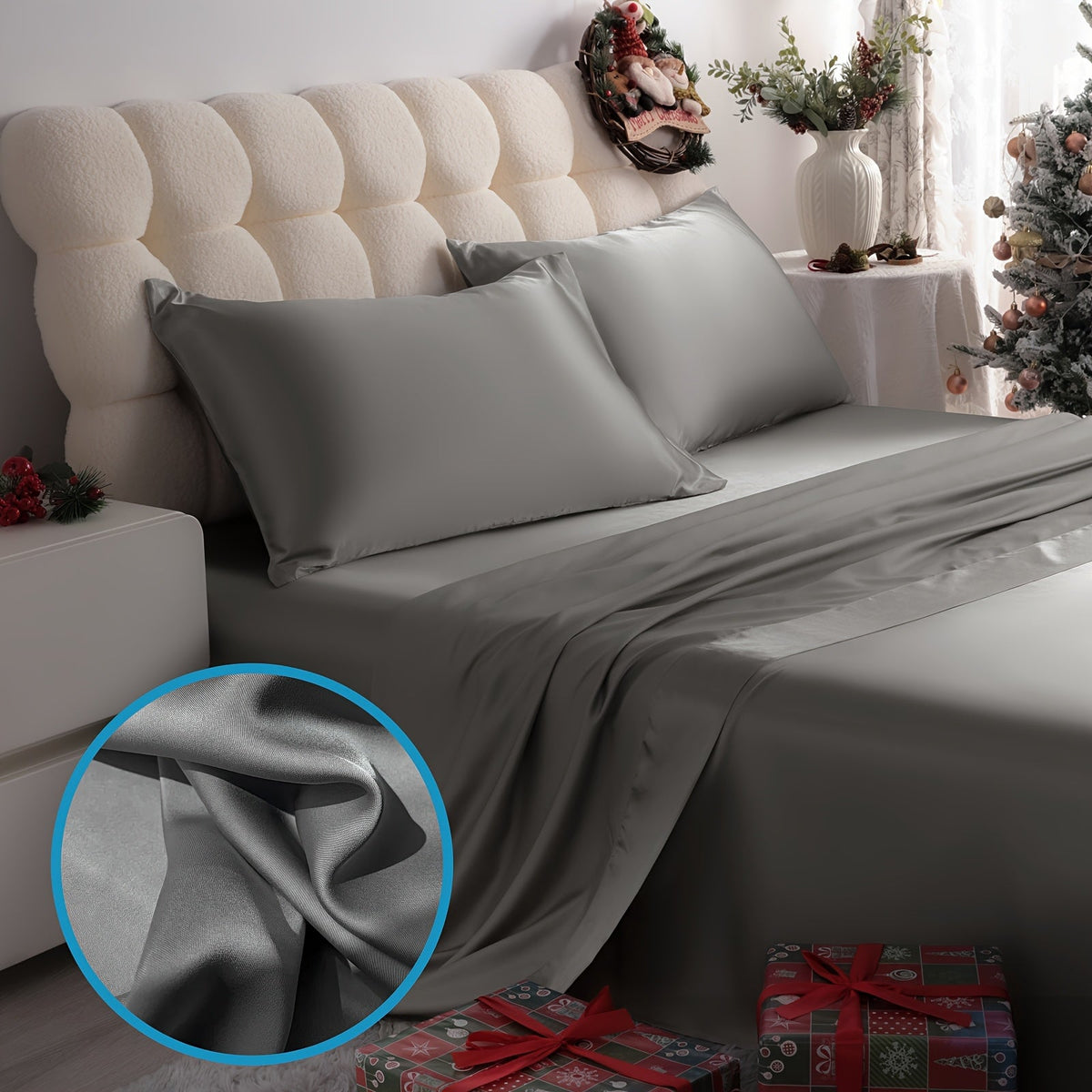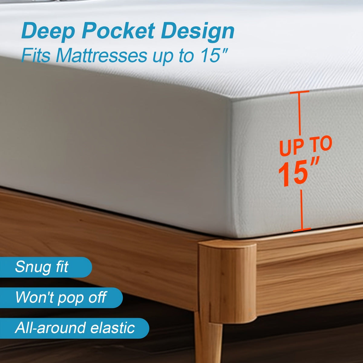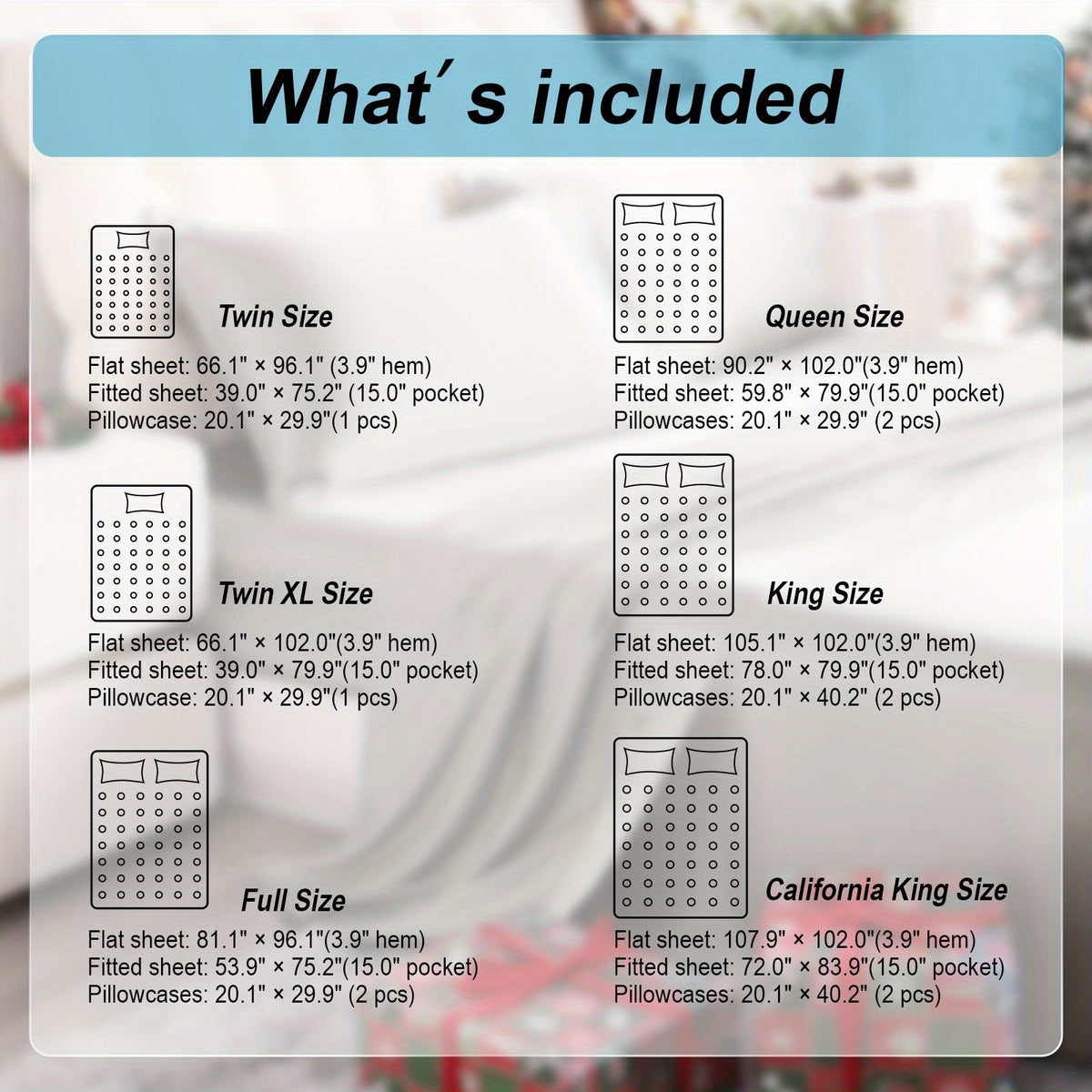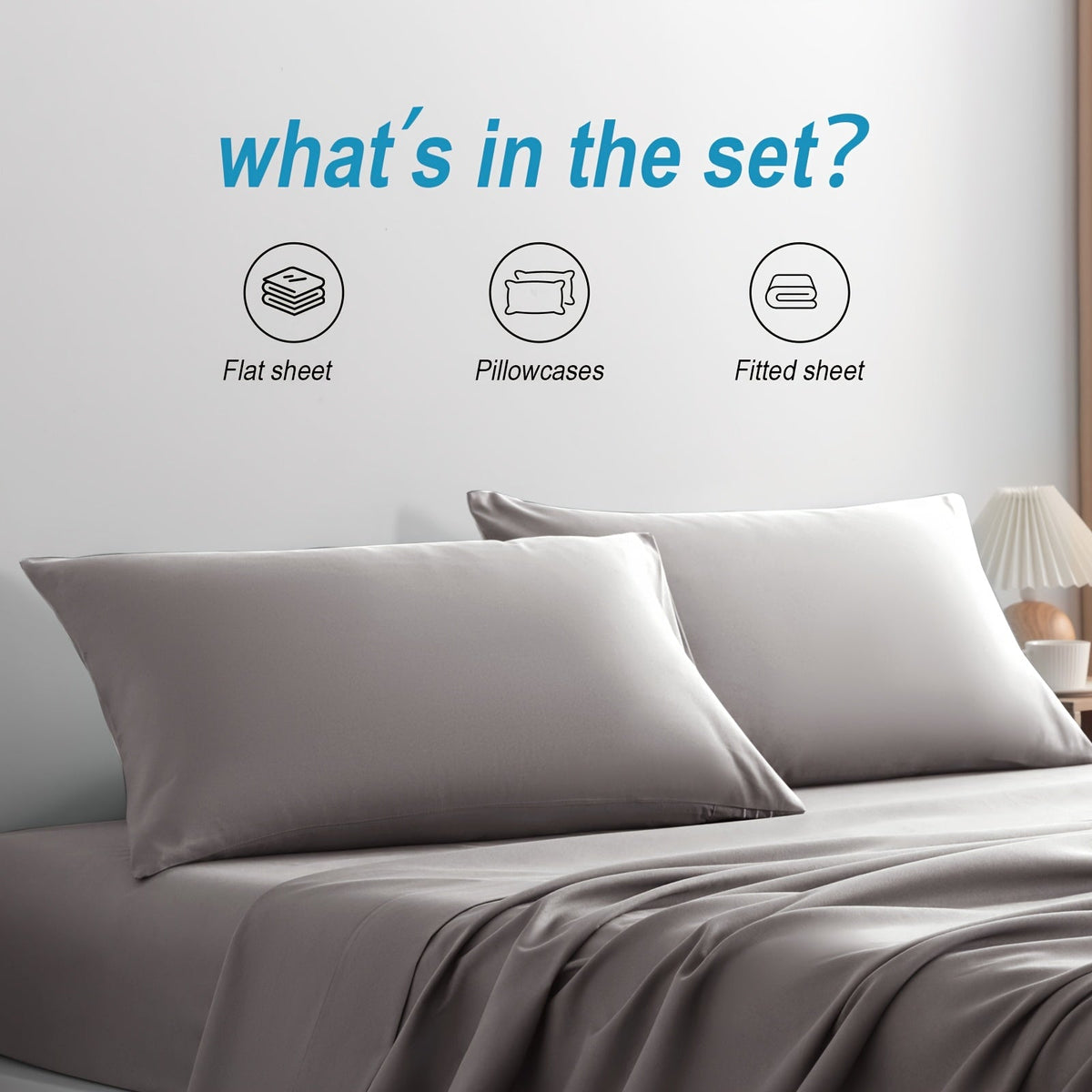 - Set Includes: 1 Flat Sheet, 1 Deep Pocket Fitted Sheet, 2 Pillowcases